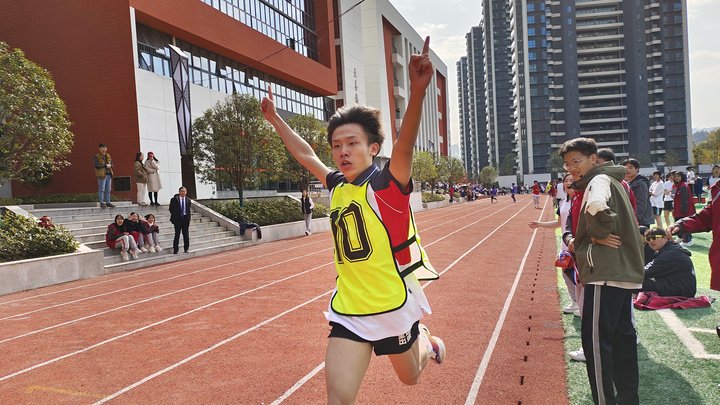田徑場上,同學(xué)們像箭一般射出,他們的身影飛逝而過,仿佛劃破了時空的界限。觀眾們的眼睛緊緊盯著賽場,為每一個沖過終點線的同學(xué)歡呼喝彩,激動的情緒在空氣中蕩漾。