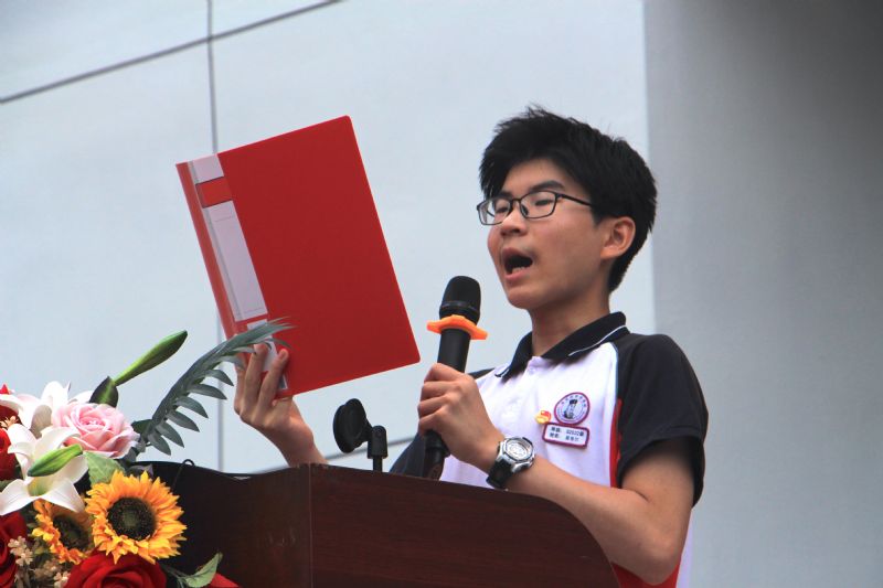 全體同學(xué)以青春的名義宣誓,高二(1)班莫恪爾同學(xué)領(lǐng)誓