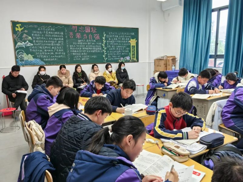 走廊外擺上了各科作業(yè)和筆記,家長(zhǎng)在陪同孩子晨讀的過(guò)程中可以隨意查看,清朗朝氣的讀書聲雜著家長(zhǎng)們翻動(dòng)作業(yè)時(shí)簌簌地碎響,譜就了一篇奇妙的樂(lè)章,十分地美妙和諧。