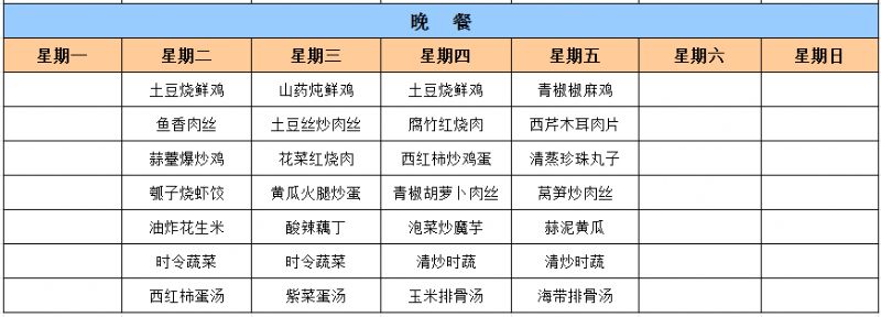當(dāng)前位置:首頁(yè) > 后勤服務(wù) > 每周食譜