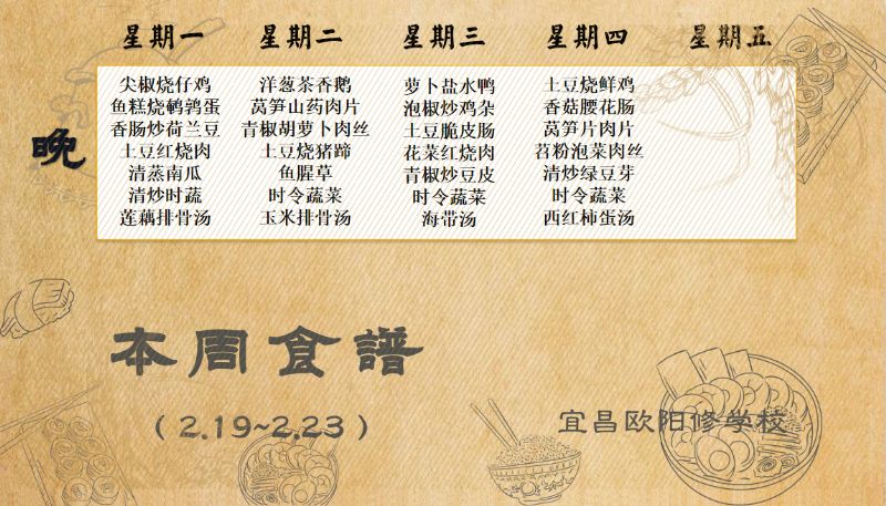 宜昌歐陽修學(xué)校每周食譜(2月19日至2月23日)