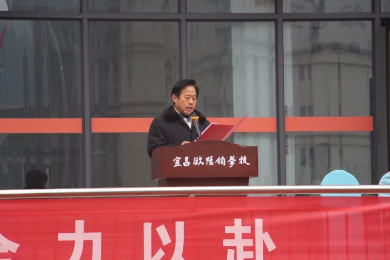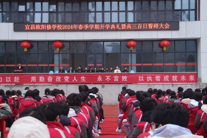 宜昌歐陽修學校春季學期開學典禮暨高三百日誓師大會在操場召開。