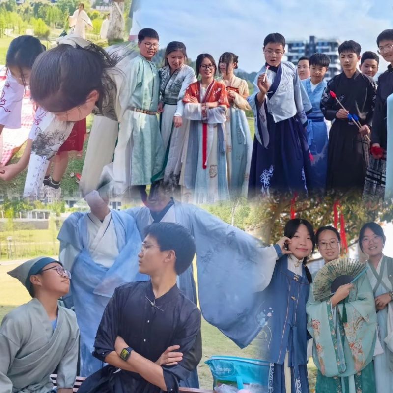 同學(xué)們分成八組,分別介紹自己組別代表朝代的服飾文化,魏晉唐宋明,同學(xué)們以漢服走秀的形式依次上場(chǎng),落落大方,流利清晰地介紹不同服飾的特色文化。大家迎著春風(fēng),衣袂飛揚(yáng),傳統(tǒng)文化與青春少年完美碰撞,創(chuàng)造出嶄新的意境。