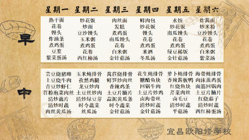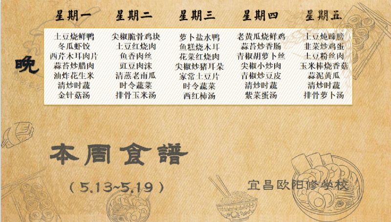 宜昌歐陽修學(xué)校每周食譜(5月13日至5月19日)