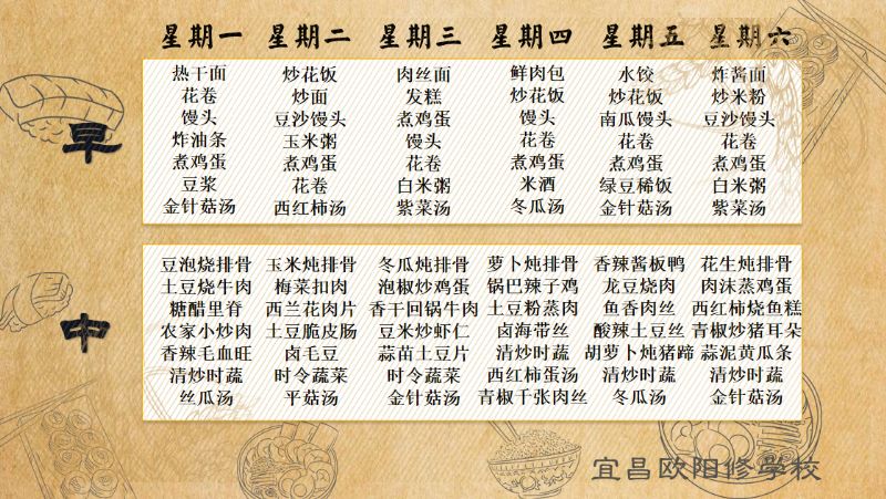 宜昌歐陽修學(xué)校每周食譜(5月20日至5月26日)