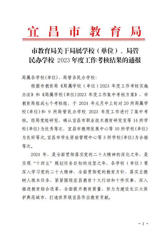 2024年,我校將繼續(xù)深入學(xué)習(xí)黨的二十大精神,全面貫徹黨的教育方針,落實(shí)立德樹人的根本任務(wù),緊緊圍繞宜昌教育十大行動(dòng)和十件實(shí)事,深入推進(jìn)教育綜合改革,全面提升教育質(zhì)量,我校將不負(fù)社會各界期望,繼續(xù)利用各類教育資源,解決好存在的問題,為學(xué)生的終身發(fā)展負(fù)責(zé),為辦人民滿意的教育持續(xù)奮進(jìn)!