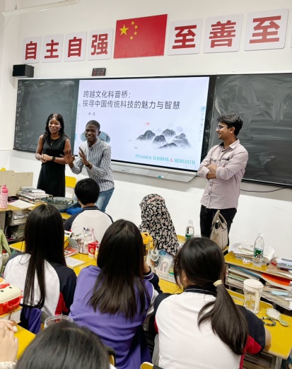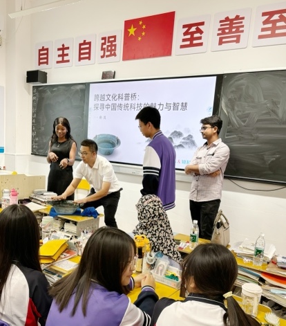 我們榮幸地邀請到了三峽大學(xué)的楊雄波博士和許瑞珍博士,以及八名熱愛科普的國際大學(xué)生。他們共同走進(jìn)了宜昌歐陽修學(xué)校的校園,走進(jìn)了國際部的教室,以神奇的中國魔力之碗——“魚洗”為主題,為同學(xué)們帶來了精彩的科普展示。在展示過程中,他們與同學(xué)們積極互動,共同探索了中國古代共鳴現(xiàn)象的奧秘。