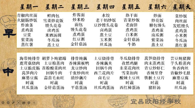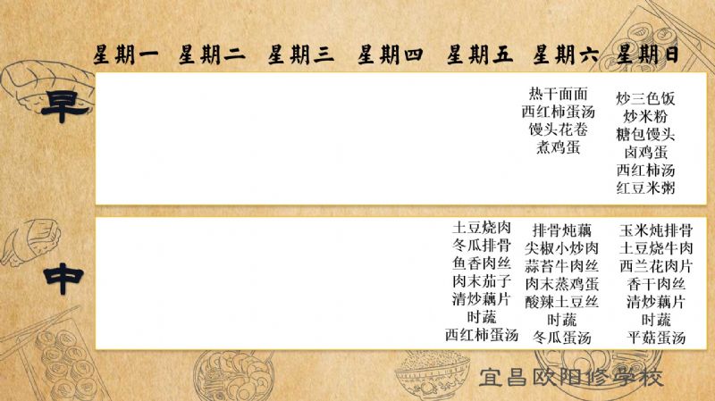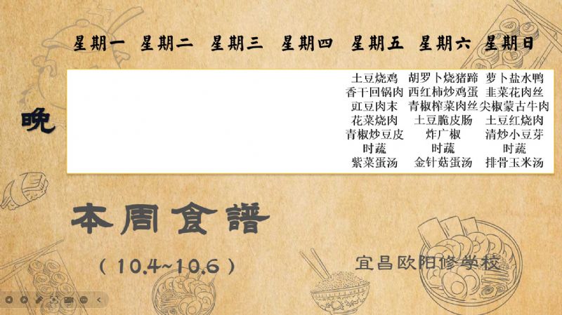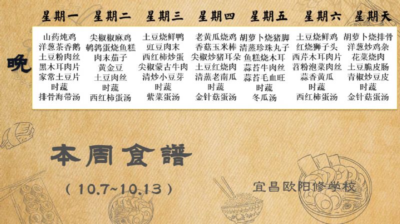 宜昌歐陽(yáng)修學(xué)校每周食譜(10月4日至10月13日)