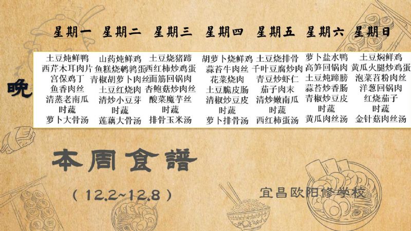 宜昌歐陽修學(xué)校每周食譜(12月2日至12月8日)