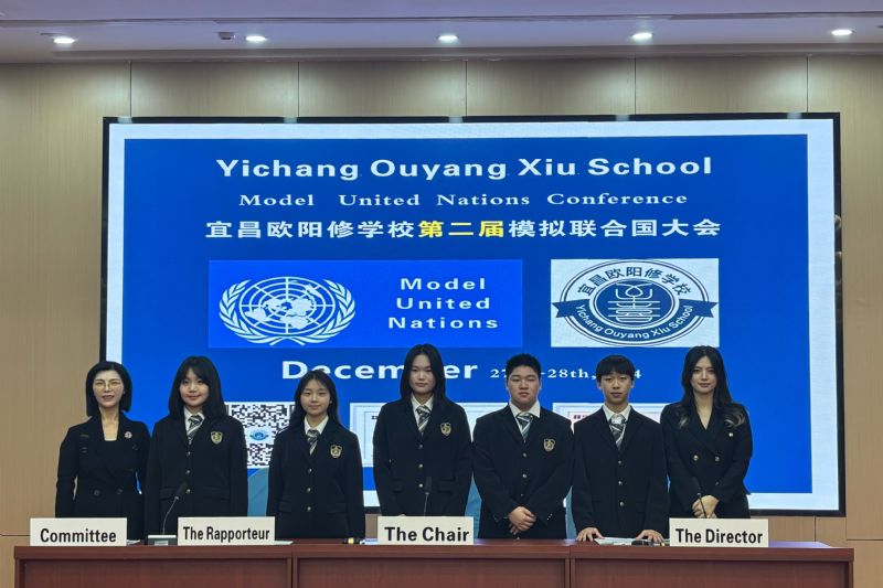 宜昌歐陽(yáng)修學(xué)校國(guó)際部第二屆MUN模擬聯(lián)合國(guó)大會(huì)于2024年12月26日晚上6:30-8:30在教學(xué)樓五樓大會(huì)議室舉行,國(guó)際部5位模聯(lián)主席團(tuán)成員以及來(lái)自高一年級(jí)的34位模擬聯(lián)合國(guó)代表將扮演各個(gè)國(guó)家的外交官,用全英文闡述FoodSafety世界食物安全問(wèn)題,給全校師生展示英語(yǔ)學(xué)習(xí)的趣味性和重要意義。