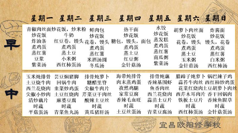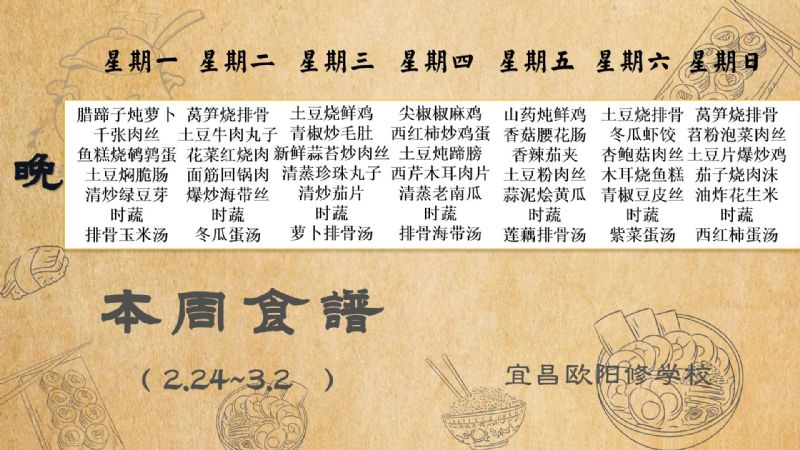 宜昌歐陽(yáng)修學(xué)校每周食譜(2月24日至3月2日)