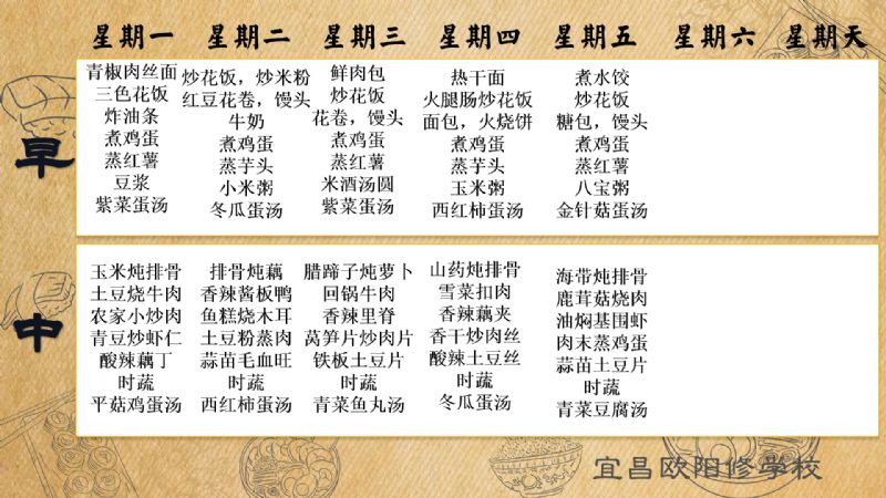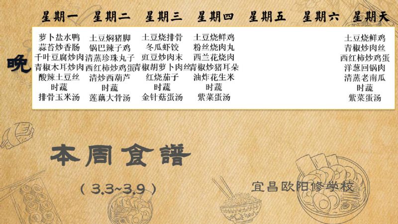 宜昌歐陽(yáng)修學(xué)校每周食譜(3月3日至3月9日)