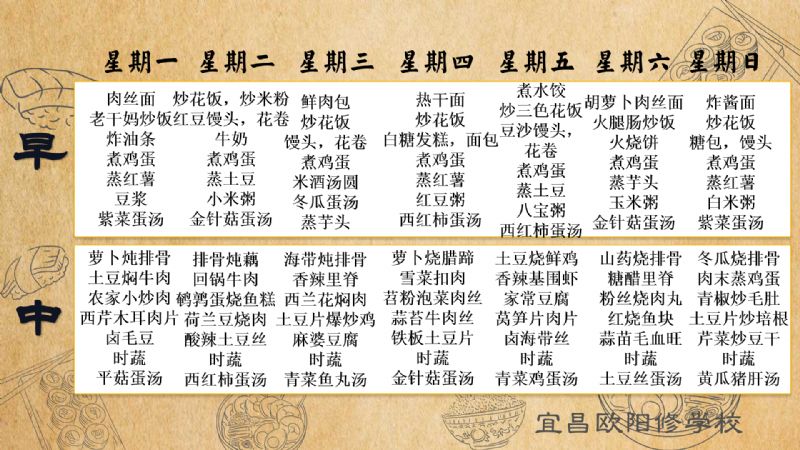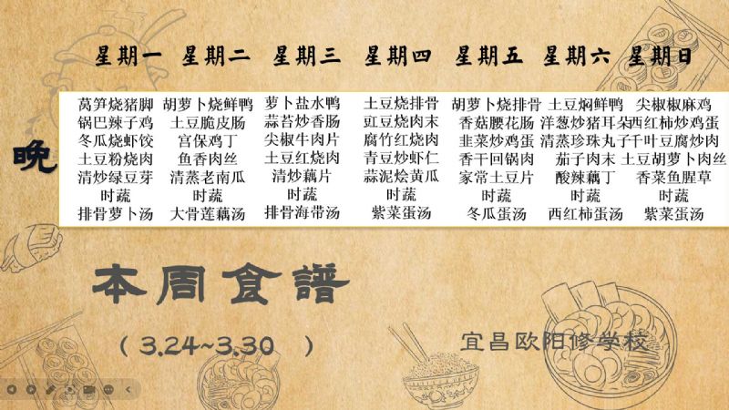 宜昌歐陽修學(xué)校每周食譜(3月24日至3月30日)