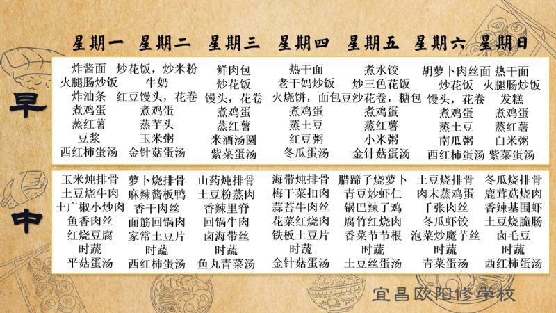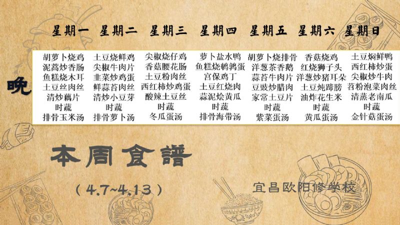 宜昌歐陽修學校每周食譜(4月7日至4月13日)