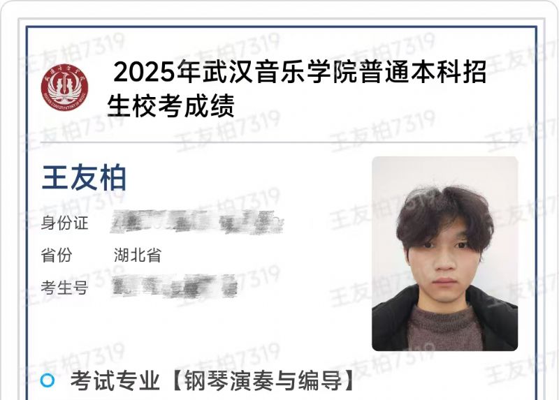 熱烈祝賀王友柏同學(xué)獲得武漢音樂學(xué)院鋼琴演奏與編導(dǎo)專業(yè)合格證!