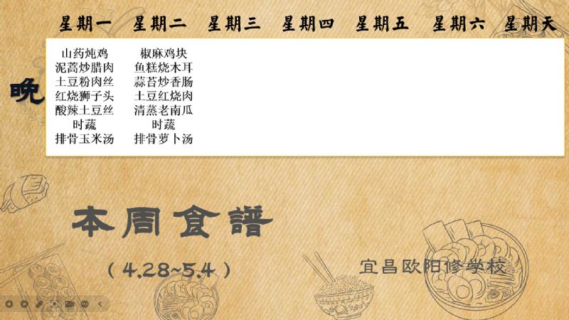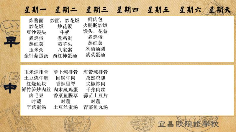 宜昌歐陽修學校每周食譜(4月28日至5月4日)