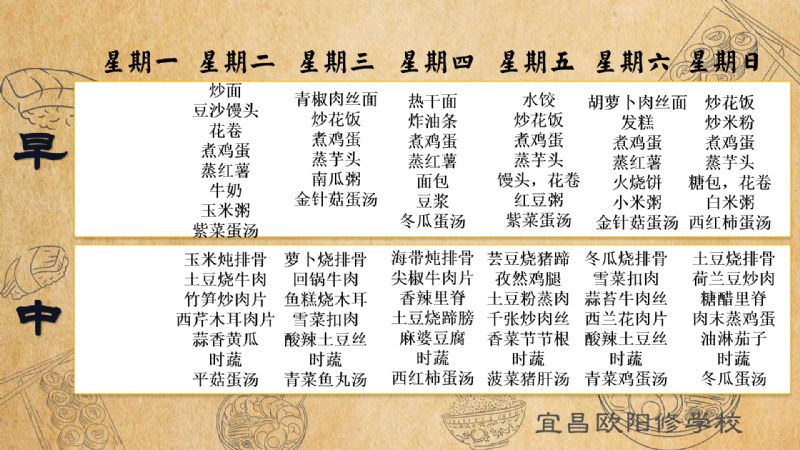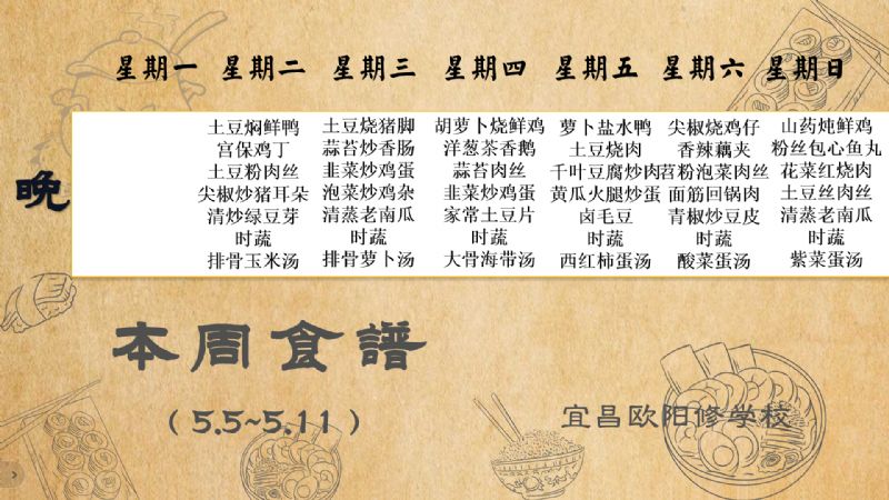 宜昌歐陽(yáng)修學(xué)校每周食譜(5月5日至5月11日)
