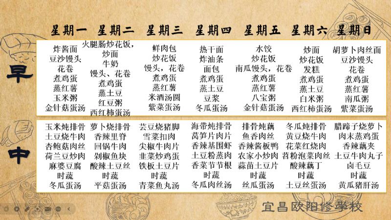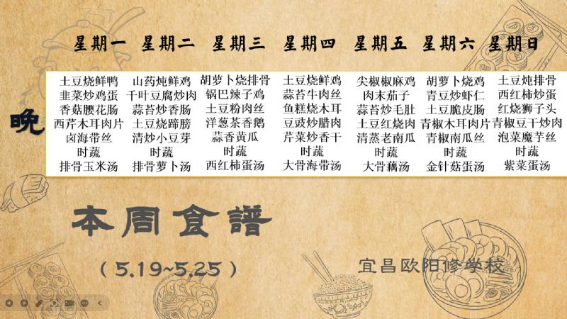 宜昌歐陽修學校每周食譜(5月19日至5月25日)