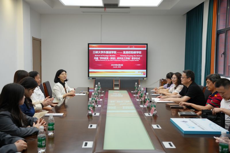 雙方在三樓會(huì)議室隆重舉行簽約儀式暨合作座談會(huì)。三峽大學(xué)外國(guó)語學(xué)院院長(zhǎng)席敬教授率代表團(tuán)出席,成員包括學(xué)院黨政辦主任余征、英語系主任劉君紅、學(xué)院科研辦科長(zhǎng)葉芳以及宜昌英語協(xié)會(huì)秘書長(zhǎng)李志坤等。會(huì)上,雙方圍繞研究生工作站的建設(shè)規(guī)劃、運(yùn)行機(jī)制及未來發(fā)展等議題進(jìn)行了深入交流與探討。