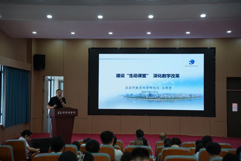 8月19日上午,馬院長以“建設生動課堂,深化教育改革”為題,從“生動課堂”建設的必要性、“生動課堂”的內(nèi)涵和特征、“生動課堂”的實施路徑三個方面作引領報告。他強調,“強教必先強師,強師必先強課堂”,生動課堂建設是回應時代對高質量教育迫切需求的必然選擇。馬院長系統(tǒng)闡釋了生動課堂的核心內(nèi)涵——即以素養(yǎng)目標為引領,依托真實情境創(chuàng)設與學科實踐深化,激發(fā)學生深度思維和主動參與,最終呈現(xiàn)生機勃勃的課堂生態(tài),并進一步提出“四維聯(lián)動”實施路徑:以價值觸動為魂,深刻理解教學內(nèi)容蘊含的育人價值;以內(nèi)容聯(lián)動為基,注重知識的整合與綜合學習;以思維觸動為要,通過實踐活動激發(fā)學生深度思考;以學習主動為本,關注學生差異,落實因材施教,調動學習積極性。這些內(nèi)容為教師如何上好生動課堂指明了努力方向和具體路徑。馬院長用一個個鮮活的案例將我們帶入一個個真實的教育場景中,為老師們帶來了一場兼具深度與溫度的盛宴。