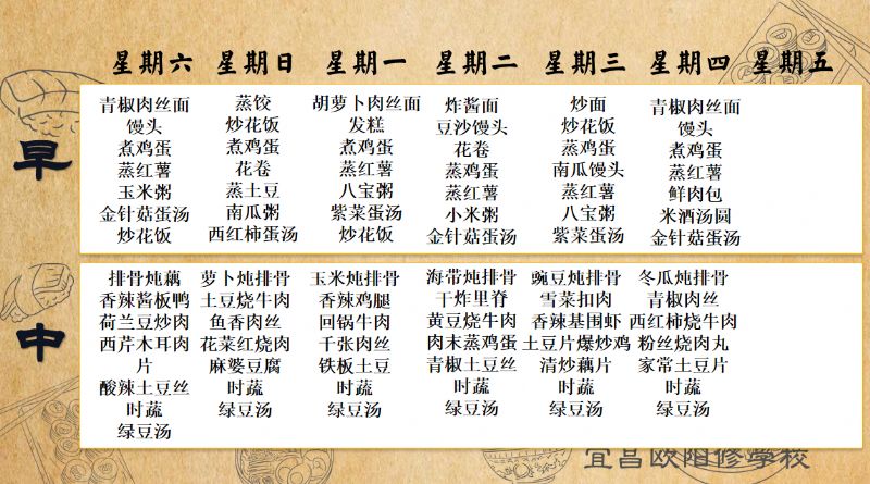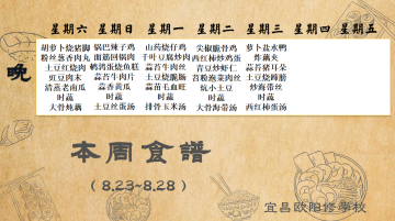 宜昌歐陽修學(xué)校每周食譜(8月23日至8月28日)