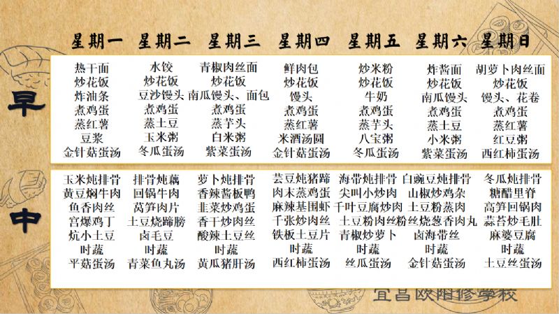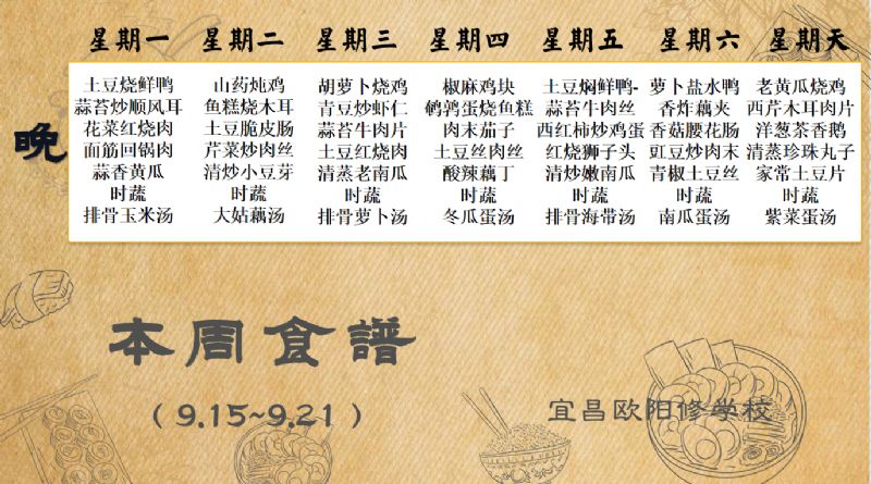 宜昌歐陽(yáng)修學(xué)校每周食譜(9月15日-9月21日)