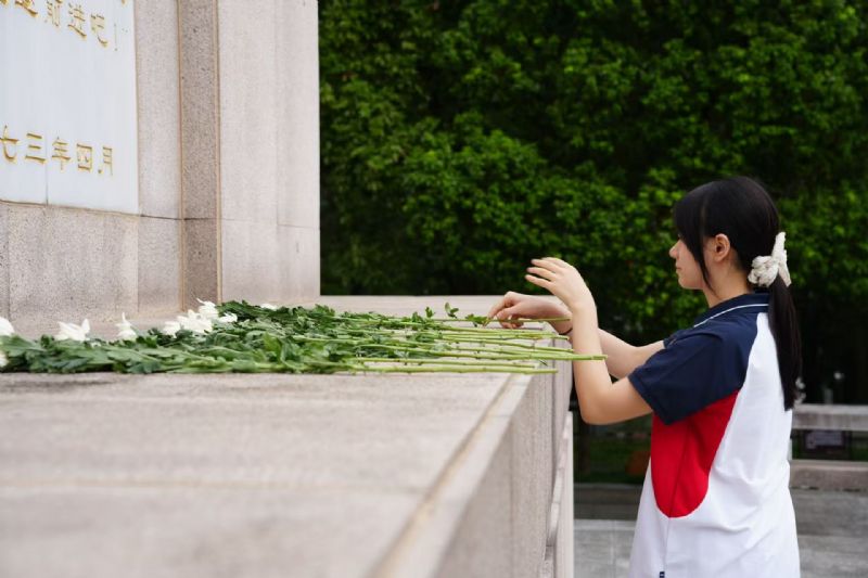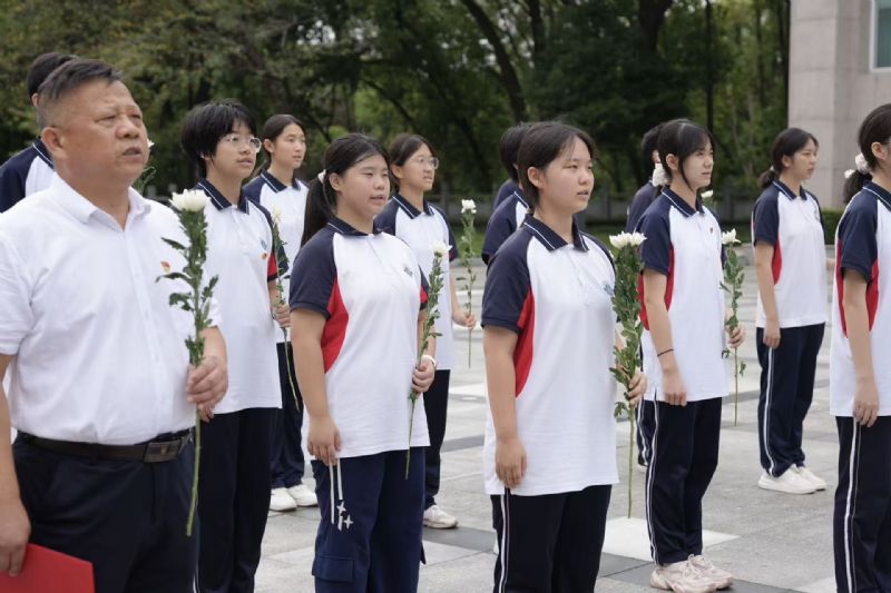 全體師生肅立,伴隨著激昂的旋律高唱國(guó)歌,嘹亮的歌聲滿(mǎn)含對(duì)先烈的深深敬意。