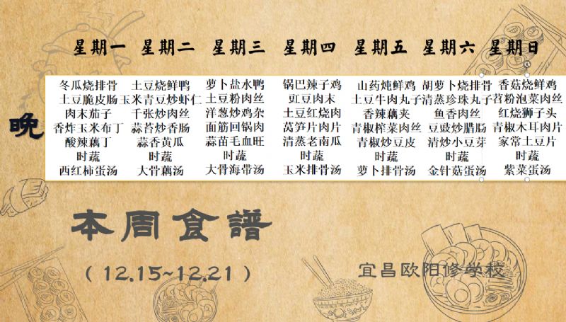 宜昌歐陽修學(xué)校每周食譜(12月8日-12月14日)