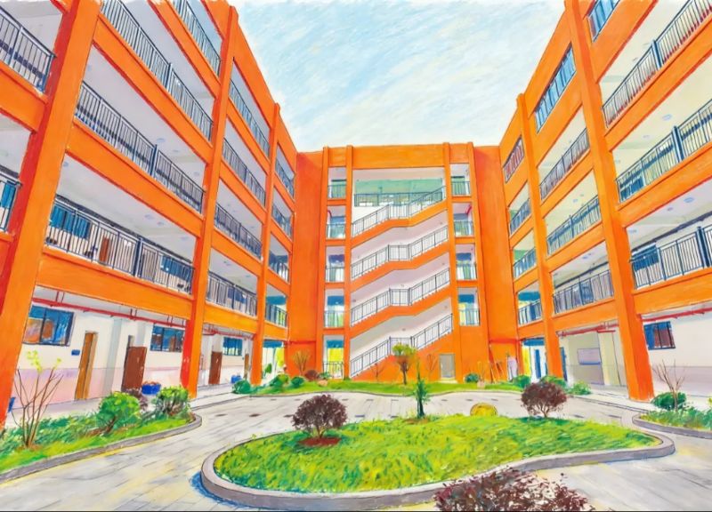 這份手繪校園風(fēng)景畫(huà),