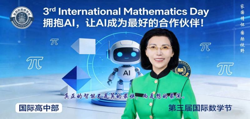 2026年3月14日,國(guó)際高中部舉行第三屆國(guó)際數(shù)學(xué)節(jié)。這次的主題是擁抱AI并成為AI的主人。國(guó)際高中部校長(zhǎng)李翠銀和雅思外教Helena以及普高部高一年級(jí)主任李駿分別致開幕詞、主旨發(fā)言和閉幕詞。國(guó)際高中部Emily和Allen雙語(yǔ)主持。主要內(nèi)容歸納如下:
