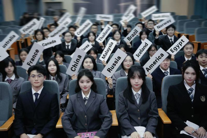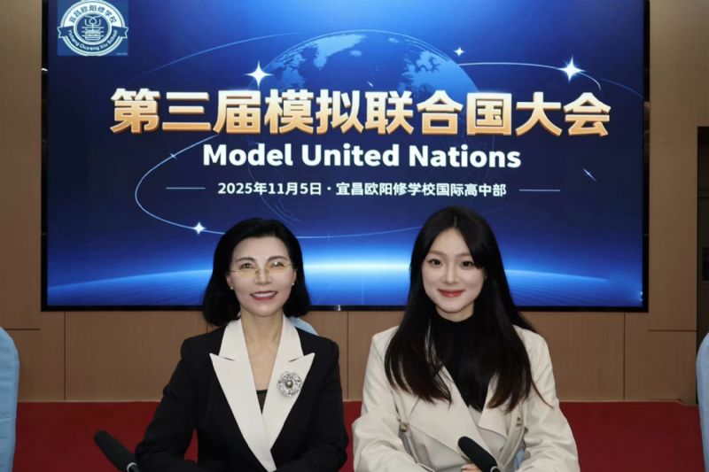 宜昌歐陽(yáng)修學(xué)校國(guó)際高中部第三屆MUN模擬聯(lián)合國(guó)大會(huì)于2025年11月5日晚在教學(xué)樓五樓大會(huì)議室隆重舉行,國(guó)際高中部OSSD中加班的11位模聯(lián)主席團(tuán)成員以及來(lái)自高一年級(jí)的24位優(yōu)秀代表扮演各個(gè)國(guó)家的外交官,全英文闡述有關(guān)UAV無(wú)人機(jī)的管控意見(jiàn),給全校師生展示了英語(yǔ)學(xué)習(xí)的趣味性和現(xiàn)實(shí)意義?! ?br /> 眾所周知,高效課堂學(xué)習(xí)方式的核心和靈魂就是體驗(yàn)和運(yùn)用。MUN模擬聯(lián)合國(guó)是一種難度適中的外交角色扮演活動(dòng),目的在于訓(xùn)練學(xué)生像聯(lián)合國(guó)官員一樣寫(xiě)作、像新聞發(fā)言人一樣演講、像外交官一樣溝通磋商談判,是一種卓有成效的領(lǐng)導(dǎo)力教育形式,是無(wú)聲的立志教育。